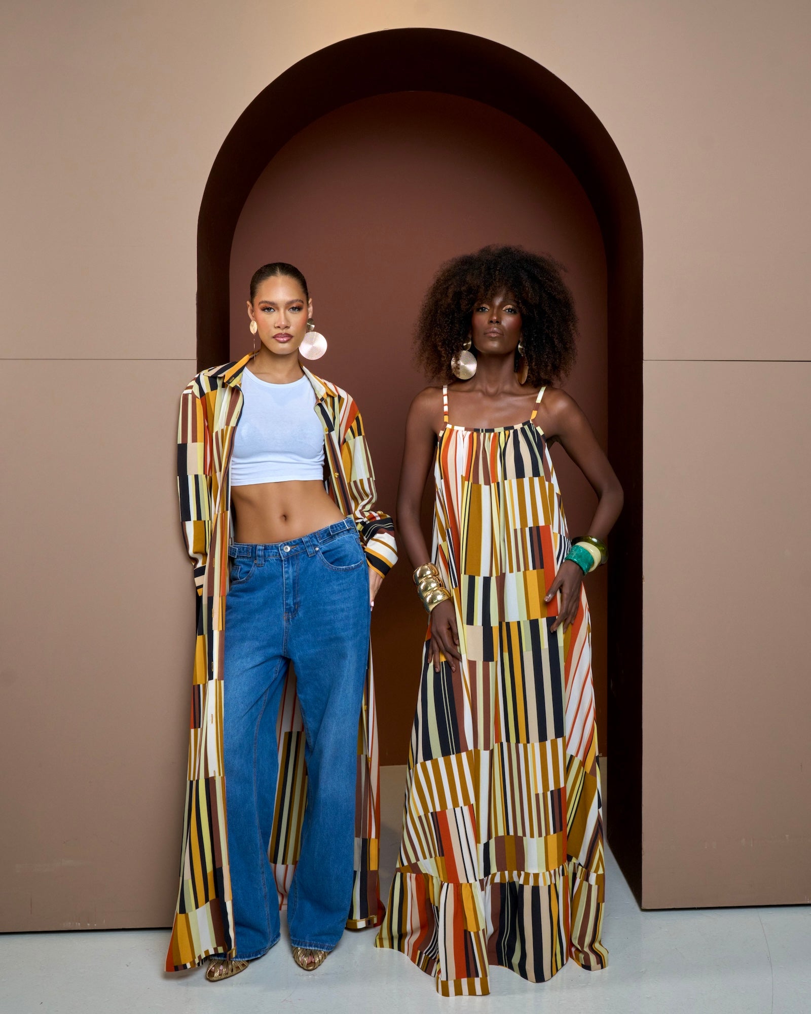 Bold yet effortless. Our Geometry Print Dress is a limited-edition summer staple designed to turn heads. Featuring a vibrant, artistic print and a flattering silhouette, this piece effortlessly blends structure with softness. Lightweight, breezy, and unapologetically expressive—it’s your go-to for sunlit days and stylish escapes.
